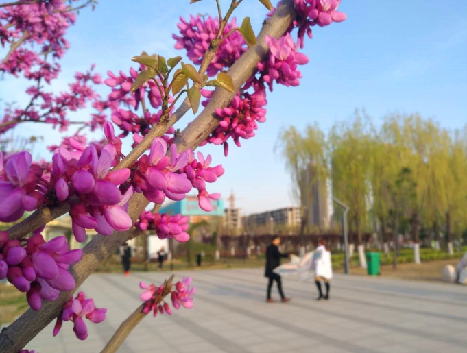 記者 張漢杰 文/圖 “風吹紫荊樹,色與春庭暮?!?月23日,市區中央公園的紫荊樹上掛滿了紫紅色的花(如圖)。一簇有數朵,緊貼著枝干?;ü谌绲浅F?。 說到紫荊,你是否會想到香港的區花紫荊花?雖然許昌市區栽種的紫荊與之同名,但是兩者的屬性不一樣。香港的紫荊屬于蘇木科,也叫洋紫荊,而咱們這里的紫荊屬于豆科,因其木似黃荊、色紫而得名。最奇特之處在于,其開花無固定部位,甚至在蒼老的樹干上也能開花。因而,其有“滿條紅”的美稱。 花期:3月底至4月初 推薦地點:中央公園、清潩河游園、許都公園、春秋廣場、西湖公園等地