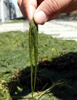 扯起來的水綿呈絲狀。本文配圖均由記者黃增瑞攝 本文配圖均由記者黃增瑞攝