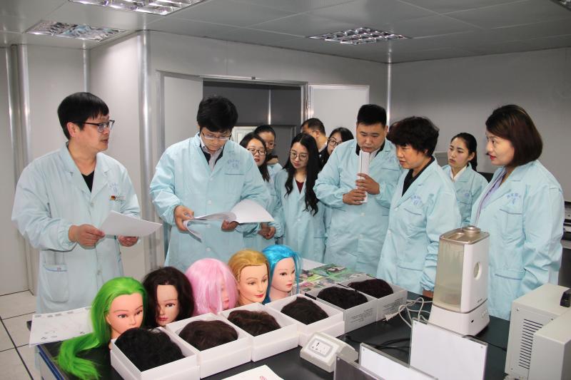 4月23日,市市場監督管理局開展“政務開放日”活動,邀請人大代表、政協委員及群眾代表參觀96333電梯應急處置中心、許昌國家質檢中心。圖為參與活動人員了解發制品檢驗檢測流程。