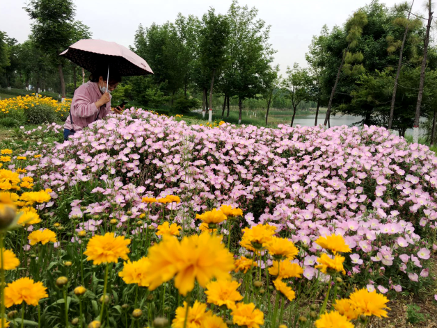 本報訊 (記者 張漢杰 文/圖) 近日,在市區芙蓉湖畔,大片粉嫩的小花盛開,鋪就了粉色的花毯(如圖)。這種花有一個好聽的名字——美麗月見草。美麗月見草又叫待霄草、粉晚櫻草、粉花月見草,是月見草的一種,為柳葉菜科月見草屬多年生草本植物。月見草因傍晚時分見月開花,天亮凋謝而得名。美麗月見草白天也會開放,花朵呈杯盞狀。