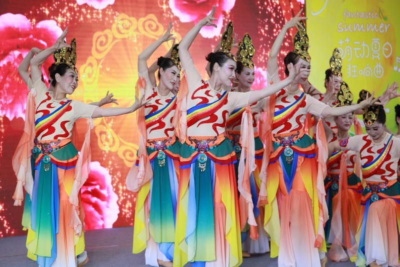 6月16日,市區萬達廣場,參賽代表隊正在表演舞蹈《一夢敦煌》。當晚,由許昌報業傳媒集團主辦的“廣杰地產杯”2019年許昌市廣場舞大賽進入決賽環節。據了解,經過半個月的角逐,60支參賽隊中有17支代表隊進入決賽,金葉舞蹈隊表演的《高粱熟了》獲得一等獎。這些代表隊在舞臺上以舞競技,充滿自信與活力,盡展廣場舞的魅力,為廣大市民送上了一道歡樂的文化大餐。