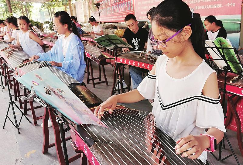 7月5日,學(xué)員們?cè)谑畜w育場(chǎng)一家藝術(shù)專修培訓(xùn)機(jī)構(gòu)練習(xí)古箏彈奏。暑假來(lái)臨,我市一些書法、繪畫、古箏、二胡等藝術(shù)類特長(zhǎng)班吸引不少家長(zhǎng)帶著孩子前來(lái)報(bào)名學(xué)習(xí),以提高孩子們的藝術(shù)修養(yǎng)和文化素質(zhì)。 本報(bào)記者 喬利峰 攝