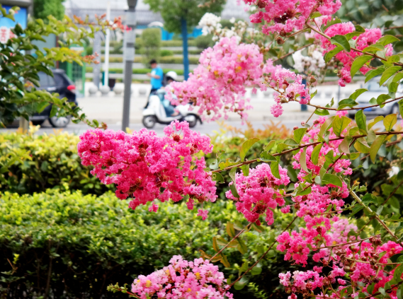 http://www.sanduguoji.com/pic/201907/10/77dea9f8-51ee-4985-bb6e-b8347dcf82c16ac14062-4c22-409b-9331-69fe06fd4247.png 本報訊 (記者 張漢杰 文/圖) 7月9日,在市區(qū)中央公園南海街附近,一大片紫薇盛開,燦若繁星,把中央公園點綴得分外絢麗(如圖)。 紫薇是千屈菜科紫薇屬落葉灌木,又叫“百日紅”。南宋詩人楊萬里有“誰道花無百日紅,紫薇長放半年花”的詩句。紫薇花色有四種,紫色的叫“紫薇”,紅色的叫“紅薇”,白色的叫“銀薇”,堇色(近似藍色)的叫“翠薇”。 花期:7月至10月 推薦地:中央公園、天寶河游園、鹿鳴湖畔、飲馬河畔等地 http://www.sanduguoji.com/pic/201907/10/77dea9f8-51ee-4985-bb6e-b8347dcf82c16ac14062-4c22-409b-9331-69fe06fd4247.png