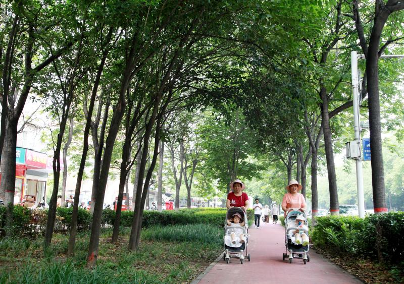 7月18日,市區(qū)學(xué)府街,市民在步行道上散步享受綠蔭下的清涼。如今,我市按照“以人為本、貼近群眾、服務(wù)民生”原則,加快城市園林綠化步伐,增加城市綠蔭覆蓋,不斷改善和提升城市環(huán)境生態(tài)質(zhì)量,讓城市空氣更加清新,生活環(huán)境更宜居,景色更優(yōu)美。