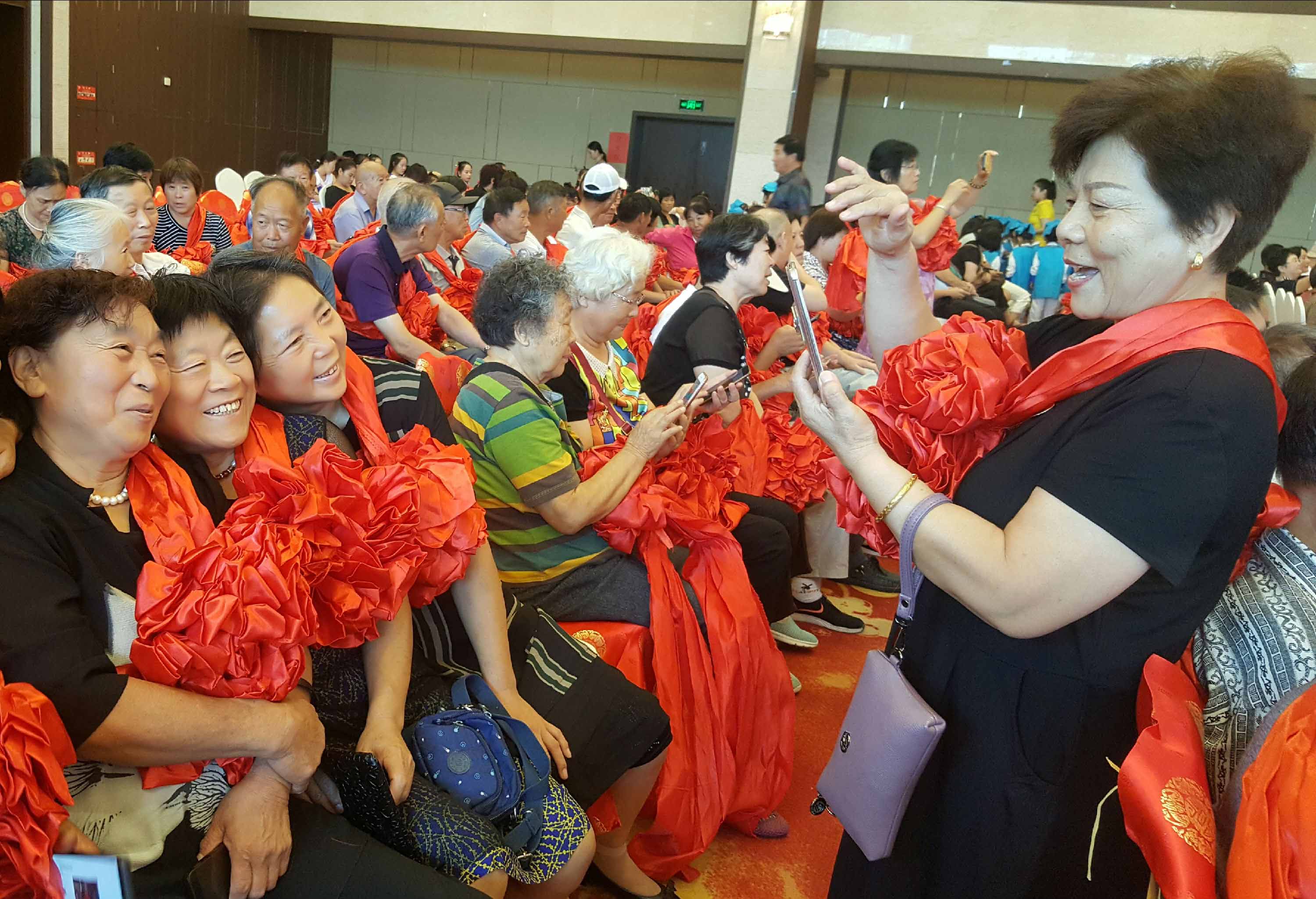 9月9日上午,由許昌市文明辦、許昌市教育局、許昌市社會科學界聯合會主辦,國家許昌經濟技術開發區管委會承辦的許昌市2019年敬謝師恩公益活動在百瑞國際酒店拉開帷幕,我市200位退休教師共同迎接第35個教師節。圖為參加活動的退休教師拍照留念。