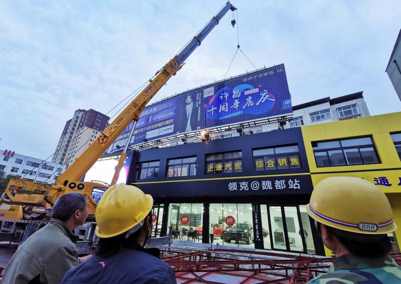 10月8日,市區建設路,工人們對違規廣告牌進行拆除。自我市開展戶外廣告專項整治行動以來,各相關縣(市、區)和市直部門積極行動,依法拆除未經許可或已超期、陳舊破損、存在安全隱患、嚴重影響市容市貌的戶外廣告牌,為市民群眾營造一個良好有序的城市環境。