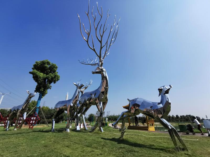 10月15日,東城區鹿鳴湖體育公園的天鹿造型雕塑在陽光下熠熠生輝。城市雕塑不僅體現一個城市的個性,而且也成為一個城市的文化地標。如今,隨著我市經濟社會的快速發展及文明城市創建的不斷深入,城市雕塑在我市較多應用,不僅繁榮了公共文化,而且提升了城市的知名度和文化形象。 本報記者 喬利峰 攝