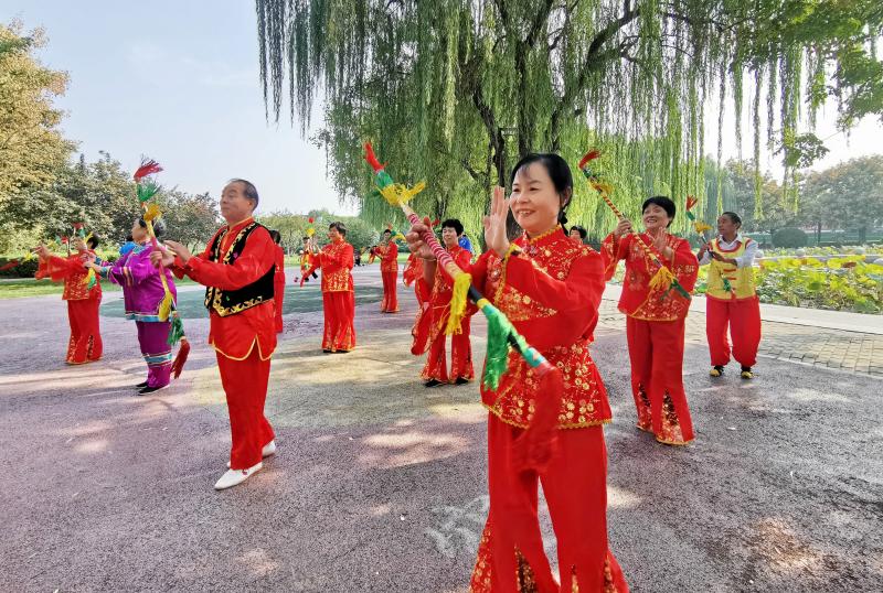 10月18日,市區(qū)街頭一游園,市民隨著音樂的節(jié)奏跳舞健身。如今,我市通過文明城市創(chuàng)建,人居環(huán)境不斷改善提升,城鄉(xiāng)居民群眾文化生活日益“美”起來。 本報記者 喬利峰 攝