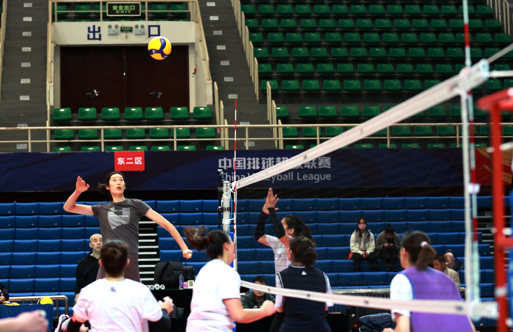 11月18日,天津渤海銀行女排在許昌職業技術學院體育館訓練,圖為著名排球明星朱婷在訓練中扣球。天津女排是我國一只排壇勁旅,九次獲得全國排球聯賽冠軍。本賽季,天津女排的陣容非常強大,朱婷、李盈瑩、姚笛以及王媛媛四大國手壓陣,再加上外援胡克爾,她們的陣容實力相當強大。她們本賽季的目標就是聯賽冠軍。11月19日19時,河南銀鴿投資女排將坐鎮主場,迎接天津渤海銀行女排的挑戰。