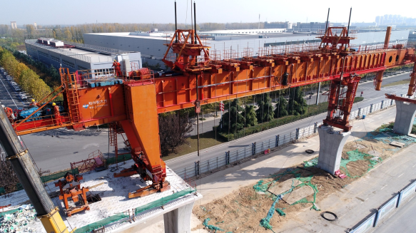 11月18日,鄭許市域鐵路許昌段架梁施工現場一派繁忙的景象。目前,鄭許市域鐵路橋梁工程筑基、節段梁架設及現澆梁澆筑等工作正在有序進行。鄭許市域鐵路是我市首條城市軌道交通干線,也是推進鄭許一體化的先導工程。中鐵十六局集團負責承建的鄭許市域鐵路許昌段項目全長33.7公里,沿途設站11座,工程設計時速120公里,計劃2020年12月6日通車運營。 記者 牛書培 攝 ?
