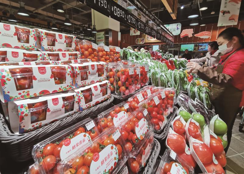 近日,市區一超市員工正在忙著備貨。春節漸近,我市各大農貿市場、超市已提前組織貨源,加大生活必需品儲備力度,確保春節市場供應充足。 本報記者 喬利峰 攝