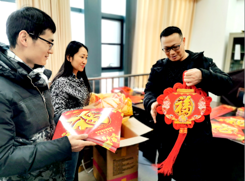 1月14日,市文明辦的工作人員(中)在發放傳播文明新風的春聯、福字和中國結。 春節臨近,市委宣傳部、市文明辦印制了6萬多副春聯,并制作了1000多個中國結,免費發放給許昌各縣(市、區)的群眾,以及為文明城市創建作出突出貢獻的市直各主創單位。中國結將社會主義核心價值觀的內容融入其中,春聯則突出許昌建設“智造之都、宜居之城”的奮斗目標。 記者 毛迎 攝