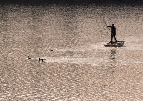 泛舟而行,水鳥在小船前“帶路”,靜謐、和諧的畫面令人會心一笑。