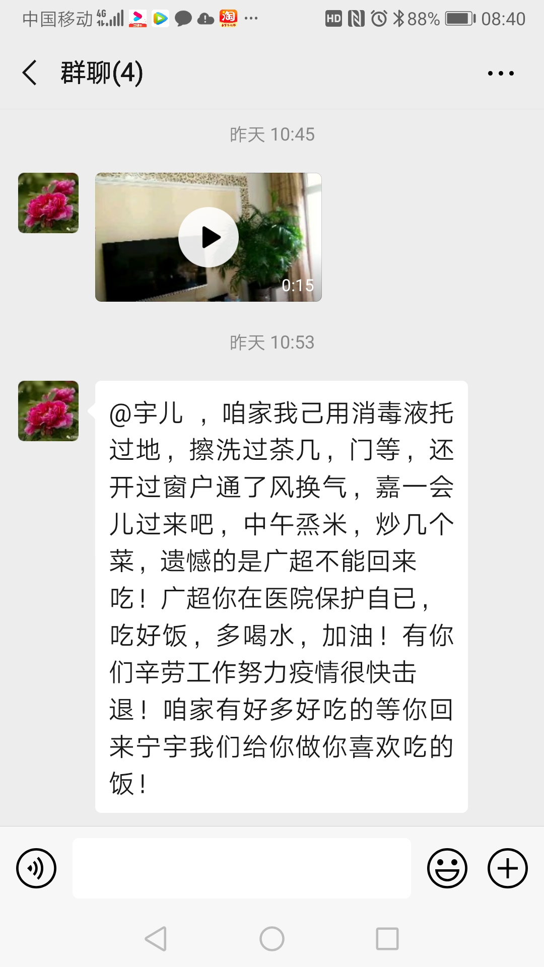 8天8夜沒有回家,又在這個特殊時期,牽掛肯定免不了的。“我牽掛他們,他們也牽掛我。不過,現(xiàn)在最重要的是救治病人,把疫情防控好。”史廣超說。家人的理解和支持給了他無盡動力。
