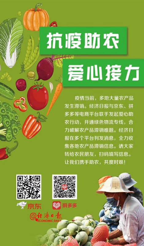 經(jīng)濟日報2月14日發(fā)布#幫農(nóng)民朋友賣果蔬#消息后,在社會各界引起了強烈反響,又一家電商平臺立即加入到了這一隊伍中來。請大家轉(zhuǎn)給農(nóng)民朋友,掃碼填寫信息↓愛心助力,共渡難關(guān)!轉(zhuǎn)發(fā)擴散!