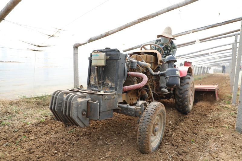 田間翻耕。
