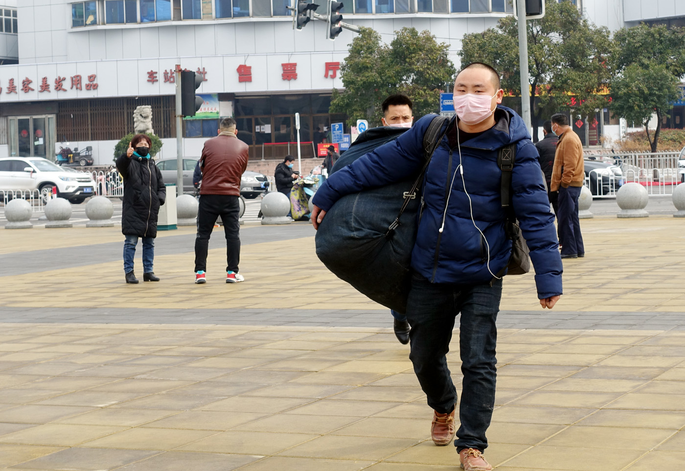 2月28日,許昌火車站廣場,農民工準備乘坐火車趕往鄭州返崗復工。記者 黃增瑞 攝