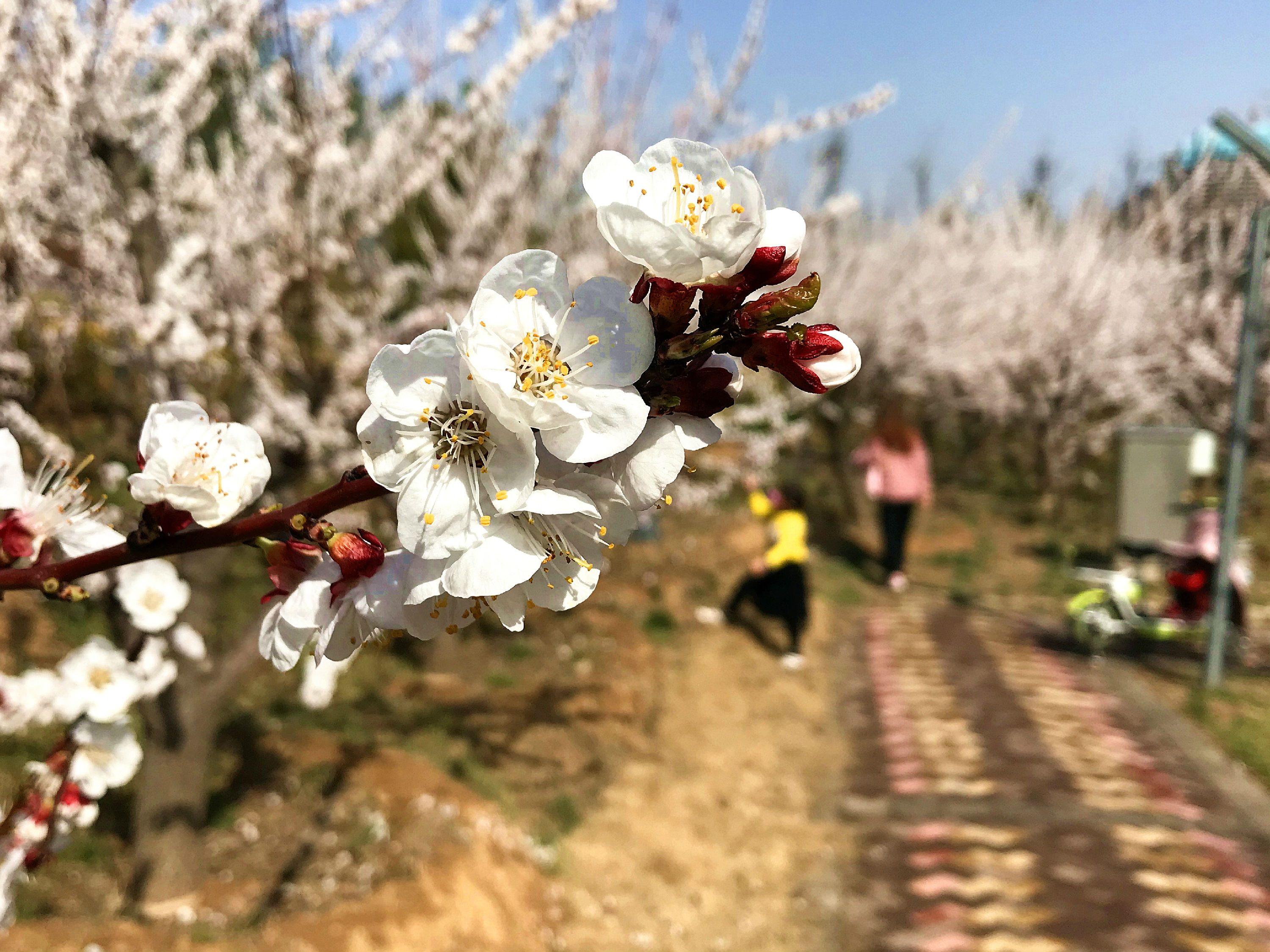 3月10日,中央公園成片的杏樹開花了。人們徜徉樹旁,與滿樹繁花形成浪漫的春天美景。記者 張漢杰 攝