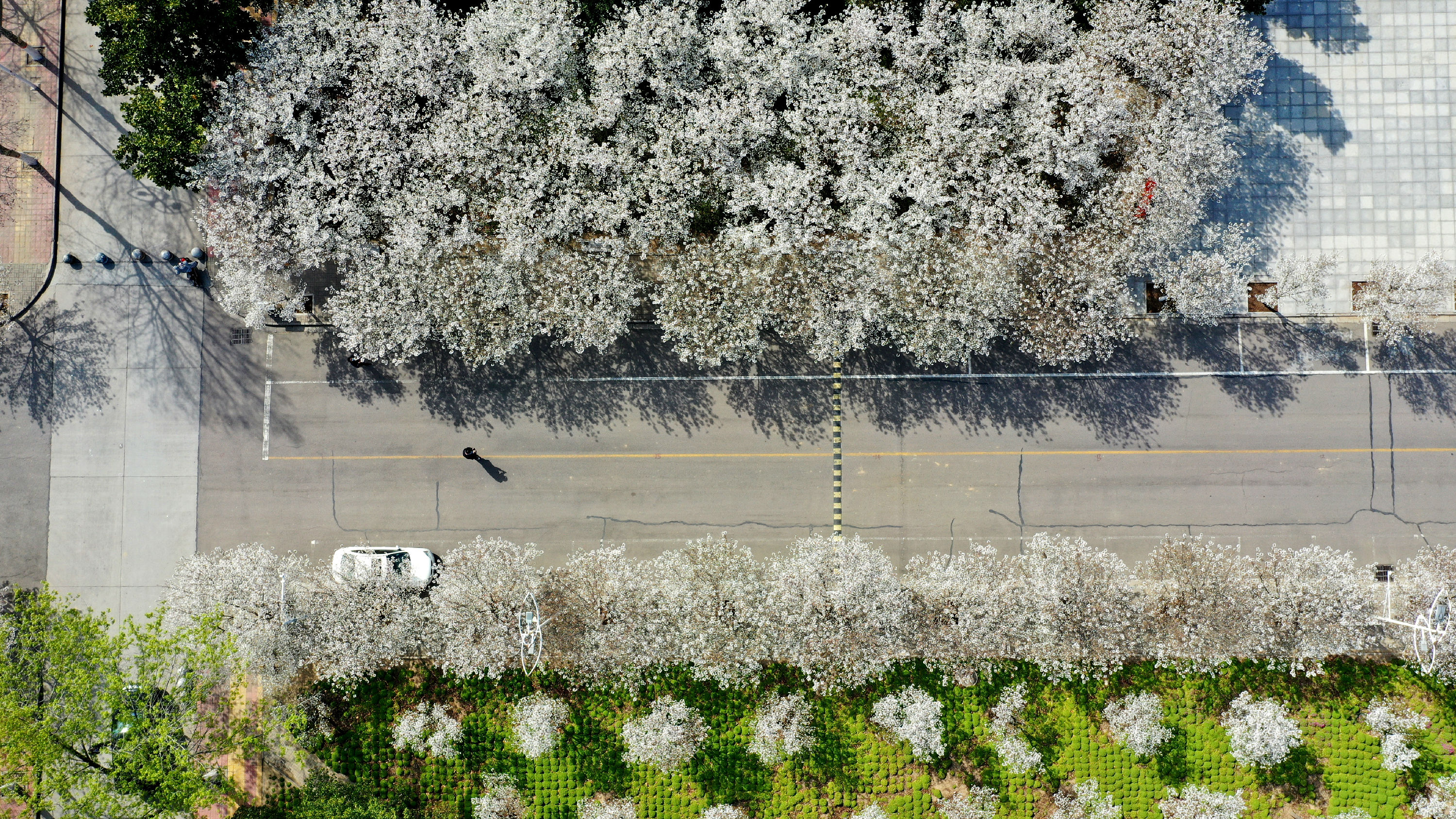 無(wú)人機(jī)飛過(guò)“櫻花大道”,記錄下繁花似錦的美景