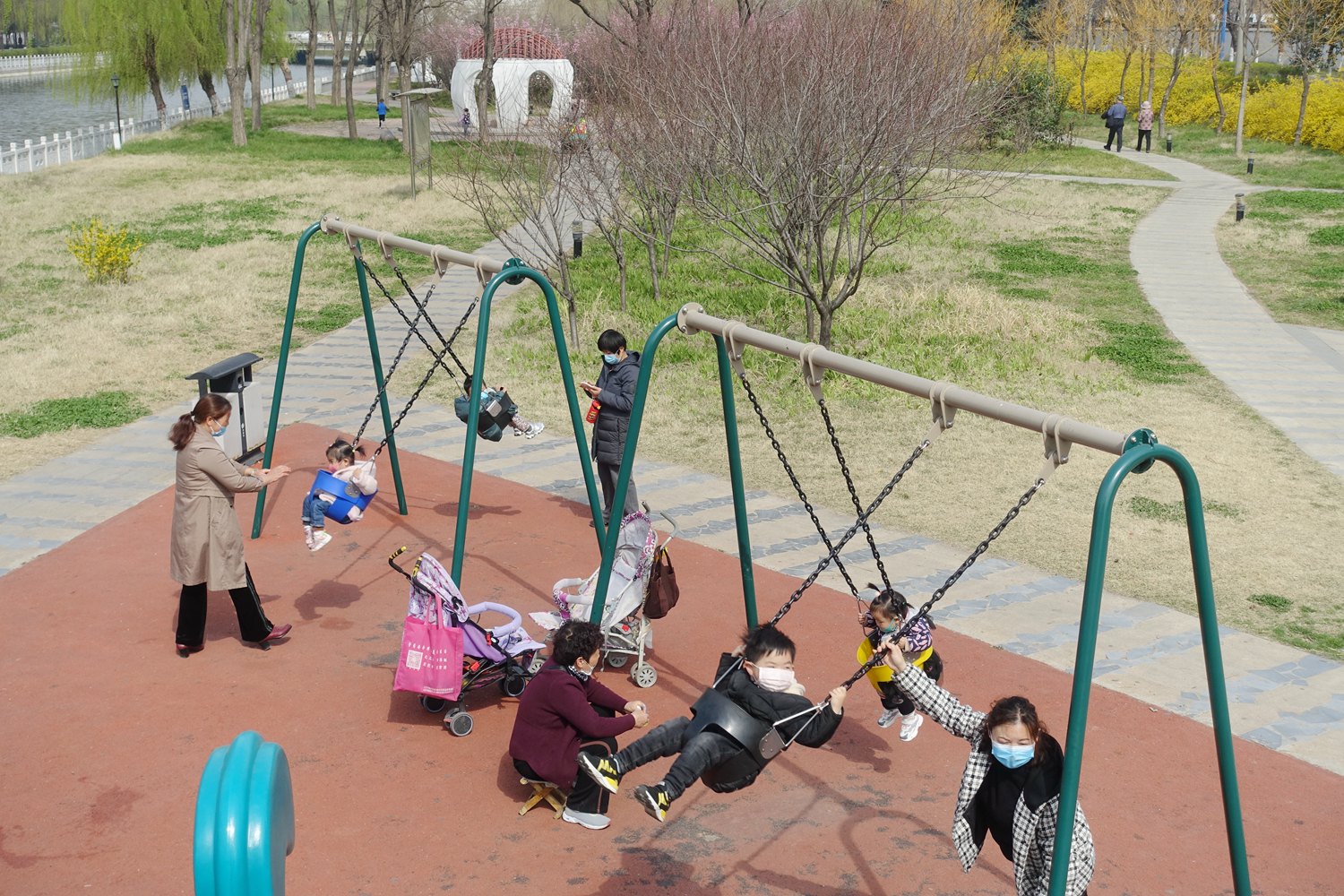 3月17日,市區(qū)清潩河游園游樂場,一些小朋友在蕩秋千。近日,我市氣溫回升,一些市民在做好自身防護的情況下走出家門,享受春光。記者 黃增瑞 攝