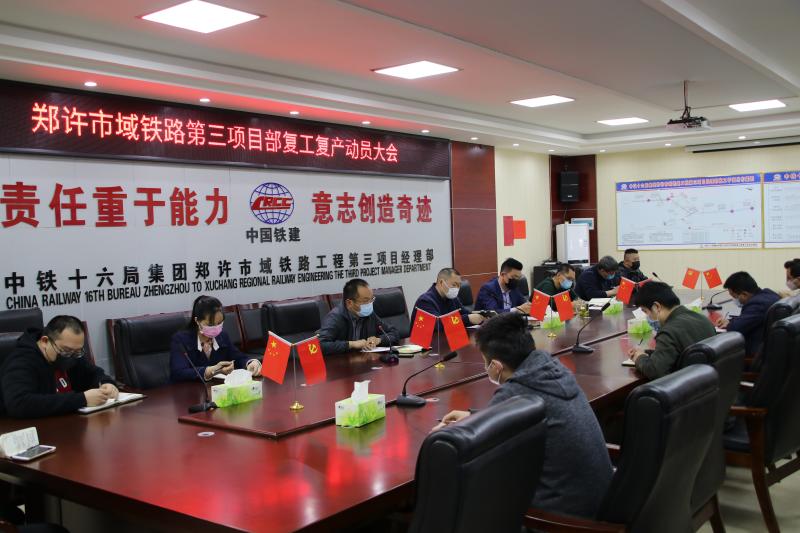 近日,鄭許市域鐵路項目部經理閆嵩主持召開項目部復工復產動員大會。他強調,要嚴格落實復工復產的相關要求,做到一手抓疫情防控,一手抓復工復產安全,切實保障職工健康安全,促進項目部年度施工生產任務的順利完成。