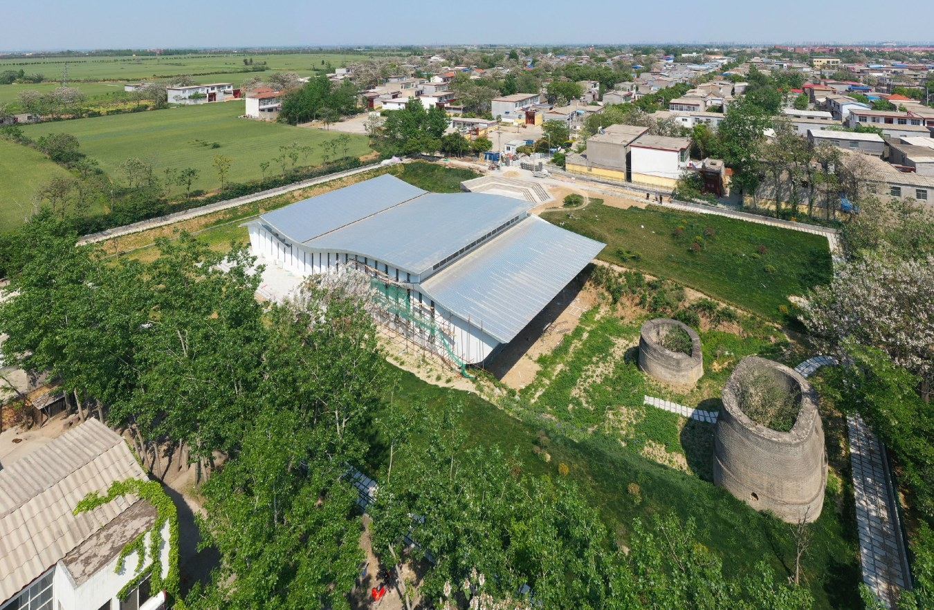 這是4月29日航拍的靈井“許昌人”遺址保護(hù)利用設(shè)施建設(shè)項(xiàng)目。該項(xiàng)目位于建安區(qū)靈井鎮(zhèn),既是遺址核心區(qū)的保護(hù)展示工程,又是考古遺址公園的重要節(jié)點(diǎn)。據(jù)了解,靈井“許昌人”遺址保護(hù)利用設(shè)施建設(shè)項(xiàng)目建筑設(shè)計(jì)參考出土文物“靈鳥(niǎo)”的形象特征。三個(gè)曲線屋頂象征三只“靈鳥(niǎo)”,暗示“三泉”。該項(xiàng)目總建筑面積1080平方米,其中遺址保護(hù)展示面積880平方米、管理服務(wù)用房面積200平方米。記者 牛書(shū)培 攝