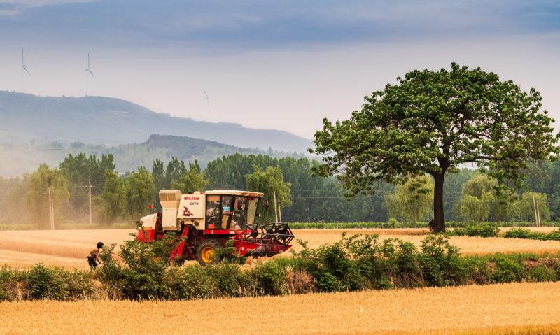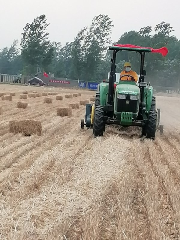5月29日下午,建安區榆林鄉一養牛場購買的秸稈打捆機正在西榆林村剛收過麥子的地里作業。今年麥收開始后,榆林鄉有六部收割機與秸稈打捆機合作,不僅加快了收割進度,還有效杜絕了焚燒秸稈現象的發生。 朱新正 攝