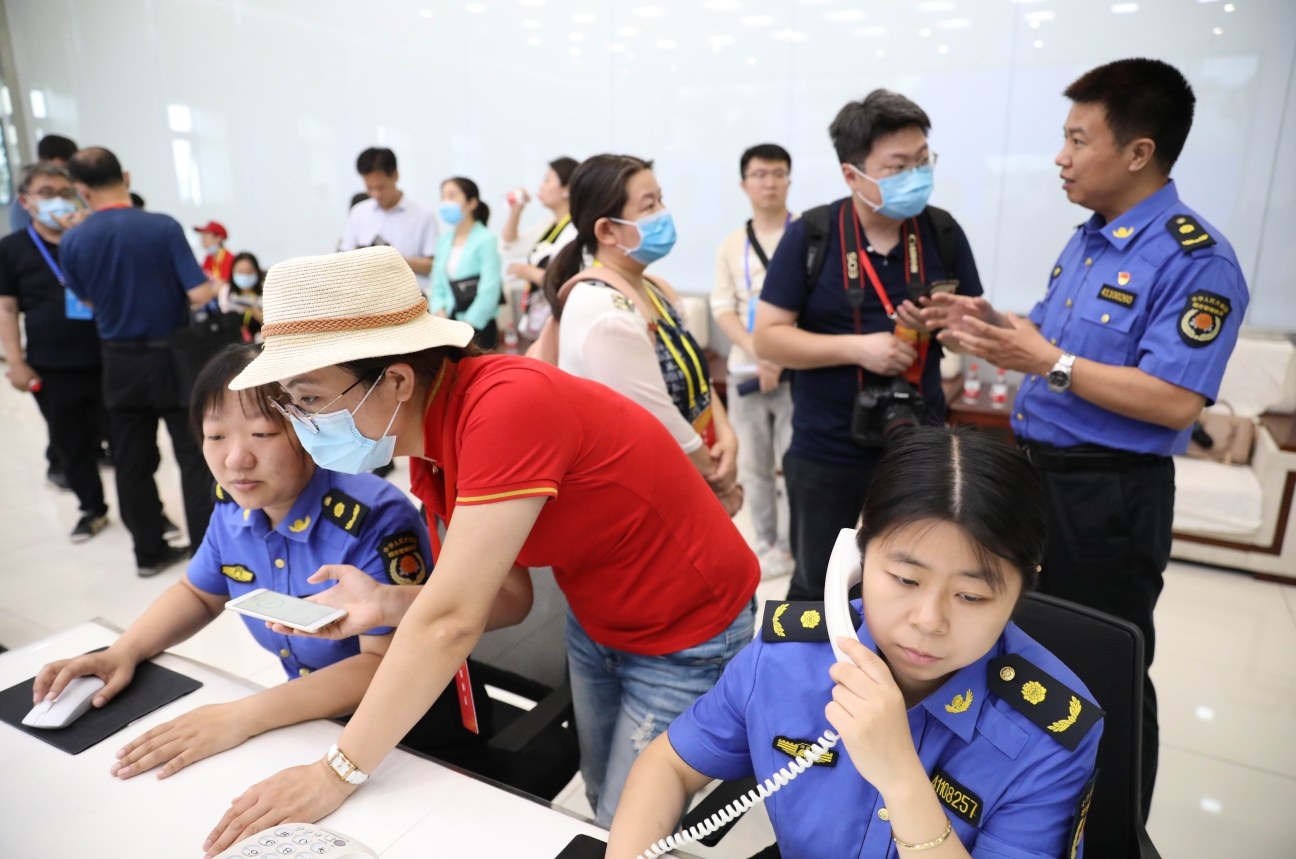 6月11日,媒體采訪團在市數(shù)字化城市管理中心對智能化城市運營管理進(jìn)行采訪。 本報記者 喬利峰 攝