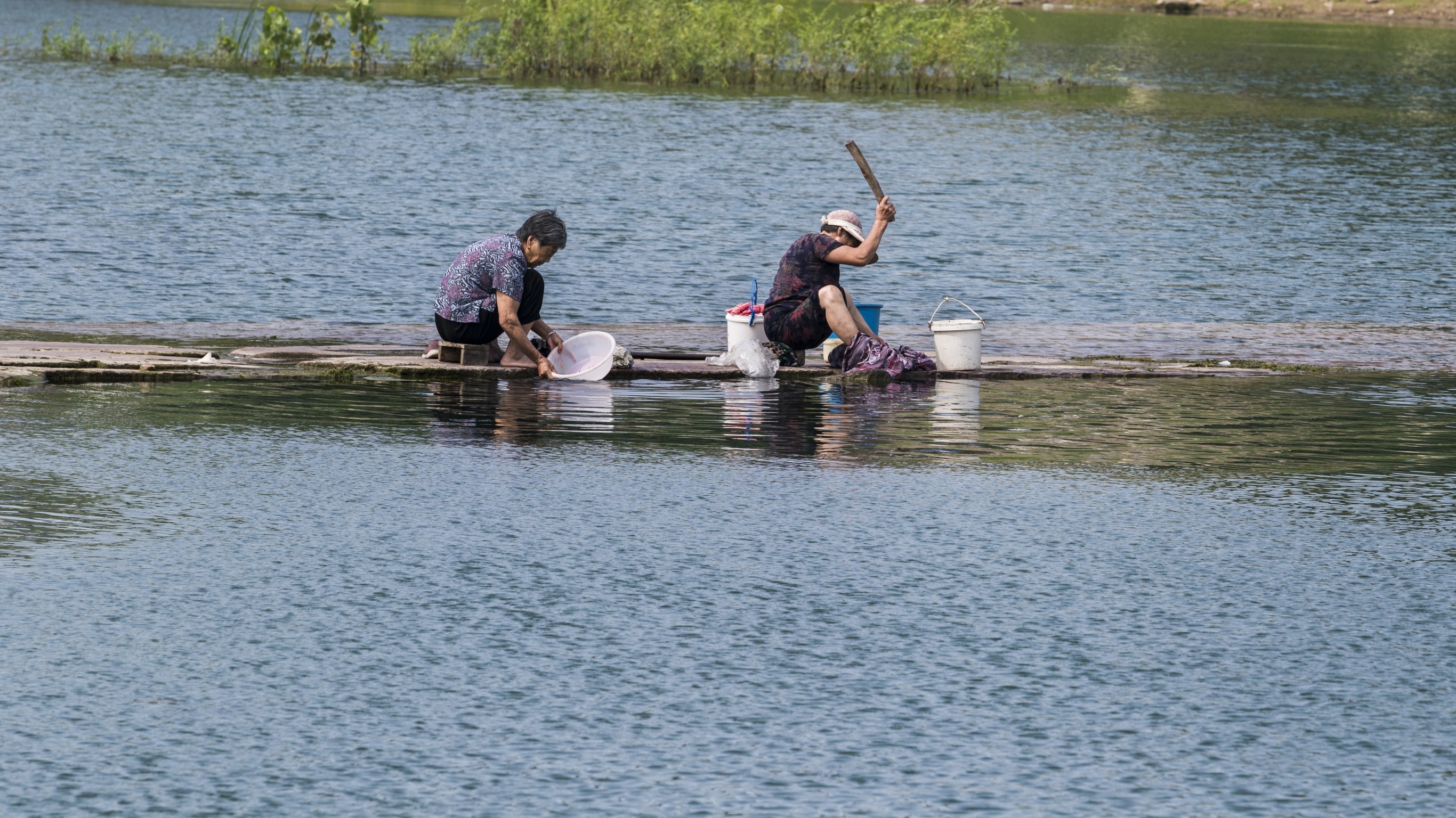 河邊洗衣的景象,存在于我小時候的記憶里。如今還能欣賞到如此景象,實在難得。