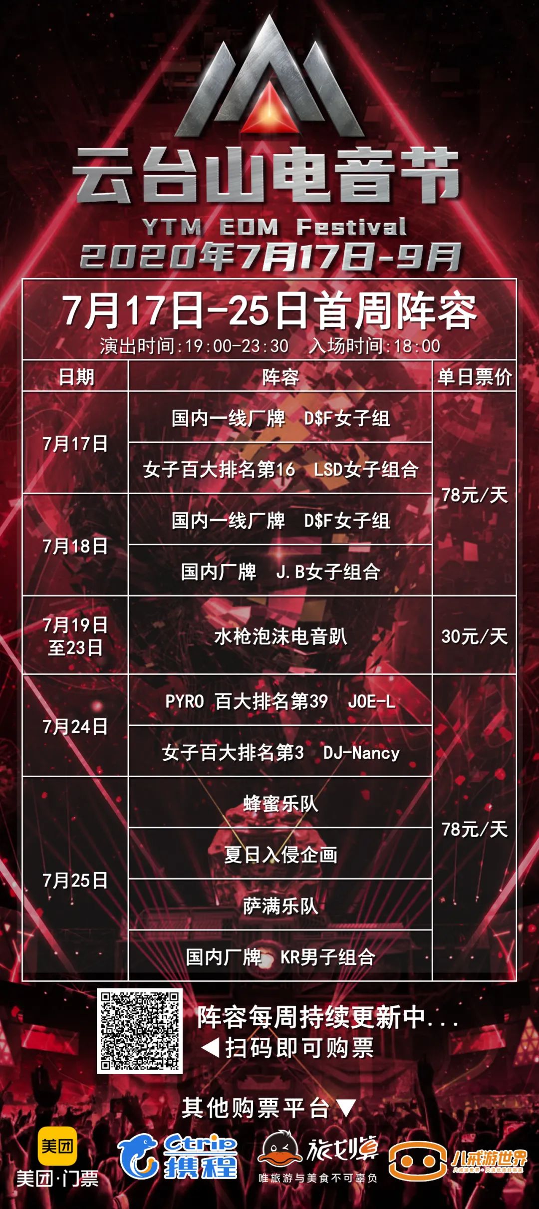 7月25日更有重磅搖滾樂隊加碼