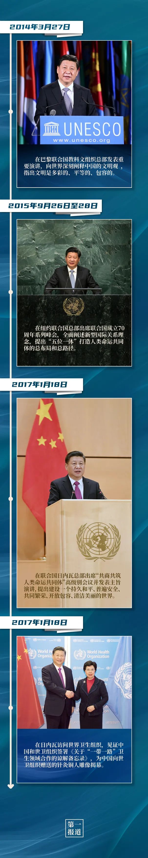 紐約聯(lián)合國(guó)總部、聯(lián)合國(guó)日內(nèi)瓦總部、聯(lián)合國(guó)教科文組織總部、世界衛(wèi)生組織,這些地方都留下了習(xí)主席的訪問足跡。站在聯(lián)合國(guó)講臺(tái),習(xí)主席闡述關(guān)于促進(jìn)世界和平發(fā)展的重要主張,表達(dá)對(duì)聯(lián)合國(guó)事業(yè)的堅(jiān)定支持,傳遞攜手各方應(yīng)對(duì)全球挑戰(zhàn)、深化多邊合作的真誠(chéng)意愿。