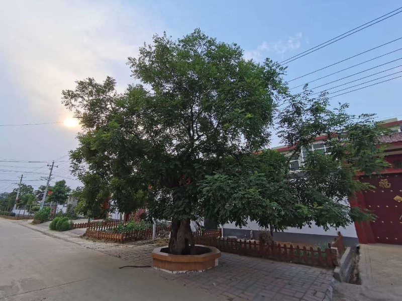 9月22日下午,襄城縣湛北鄉尚莊村靜謐安詳。該村中心街西頭路北佇立著一棵大樹。它有近3層樓高,樹干有兩抱多粗,根部深深地扎在泥土中,周圍砌有水泥花壇。