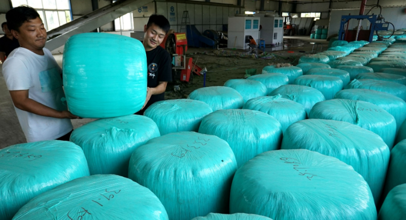 10月12日, 工人在鄢陵杜仲功能食品(飲品)產業化示范基地對烘干的杜仲葉進行打捆包裝。
