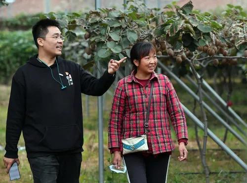 田昕在牛橫嶺村查看獼猴桃生長情況(10月12日攝)。本報記者李嘉南攝