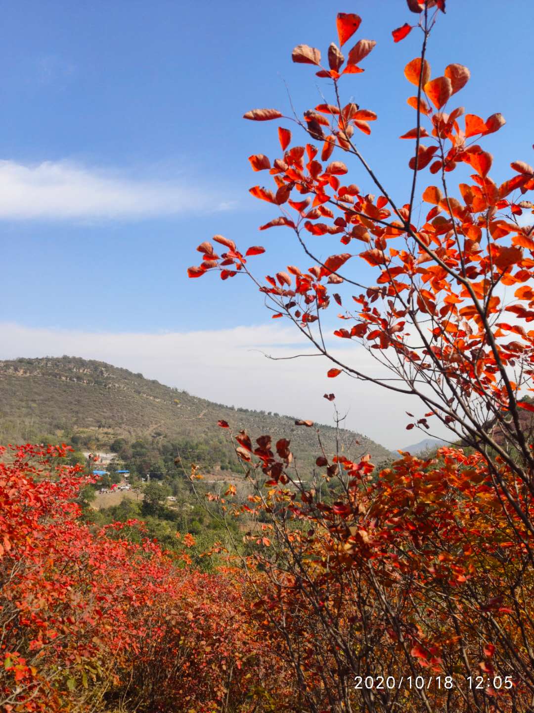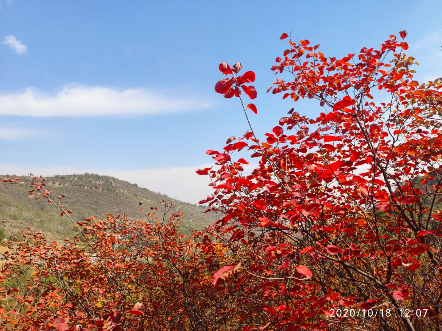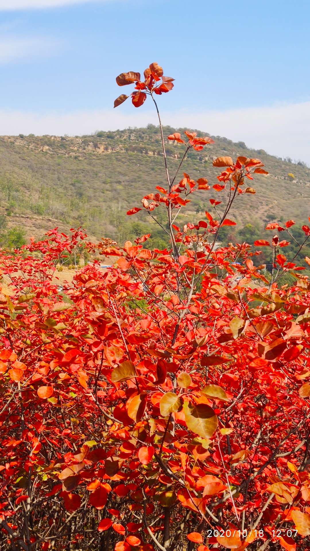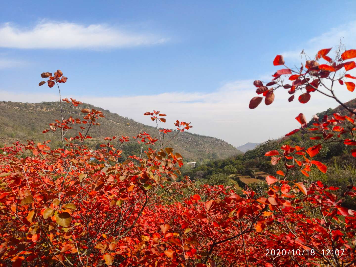 但今年,尚未等到天氣落霜,地處伏牛山脈與豫東平原過渡帶的鳩山 天垌村漫山遍野的紅葉已是竟紅爭艷。