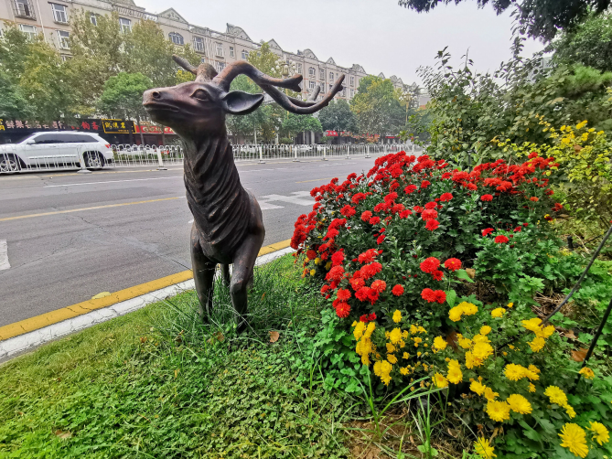 “颯颯西風滿院栽,蕊寒香冷蝶難來。”秋季是菊花盛開的季節。10月27日,記者在市區建安大道看到,綠化帶里各色菊花盛開,紅的勝火,黃的似金,與栩栩如生的小鹿雕塑相映成趣,非常好看。