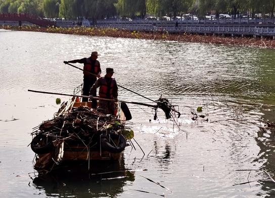 http://www.sanduguoji.com/pic/202011/03/60dd3885-8122-485d-bdc7-2159d6ce9cdad5d519f1-9960-4f43-b5cb-7c543e39bb20.png 11月2日上午,市區南護城河西段望仙橋邊,兩名市政工人正在收割、打撈枯萎的荷葉。 市市政實業集團有限公司護城河養護項目部負責人姜晨龍介紹,枯萎的荷葉如不及時收割、打撈,會在河中腐爛,進而影響水質。10月下旬以來,他們出動了20名工人和7條保潔船實施作業。預計本月上旬,護城河中所有的枯萎荷葉將清理完畢。記者 呂正子 攝 http://www.sanduguoji.com/pic/202011/03/60dd3885-8122-485d-bdc7-2159d6ce9cdad5d519f1-9960-4f43-b5cb-7c543e39bb20.png