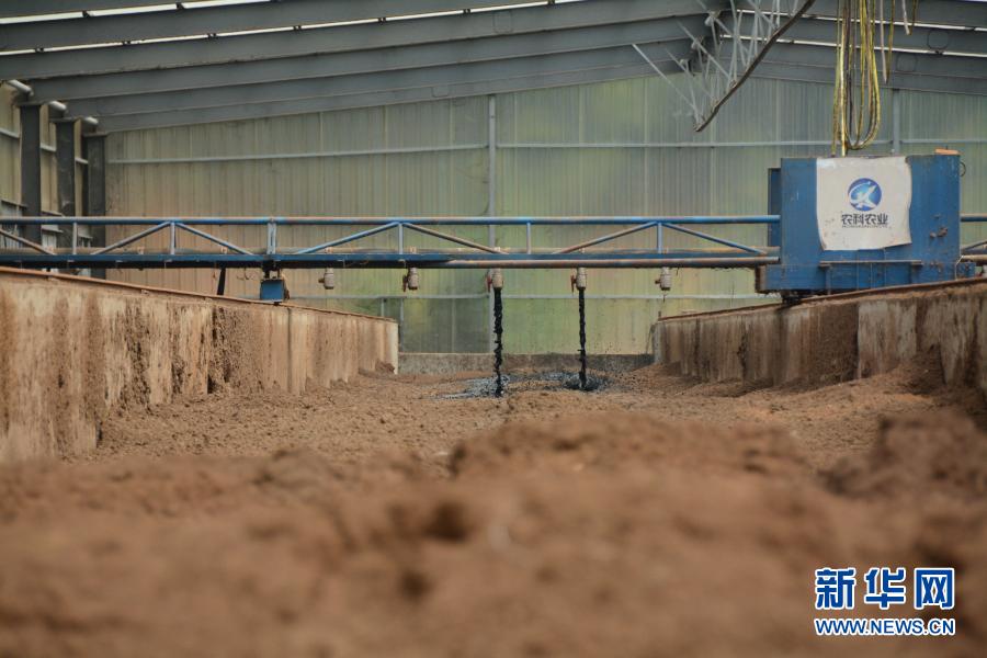 在福建省福清市永誠華多種豬公司豬場內(nèi),半自動(dòng)化機(jī)械將收集的養(yǎng)殖糞污噴灑至墊料上。這是福建首創(chuàng)的“異位發(fā)酵床”技術(shù),發(fā)酵后的糞污可以作為有機(jī)肥源,并可以讓養(yǎng)殖場實(shí)現(xiàn)污染“零排放”(2019年8月12日攝)。新華社記者 林超 攝