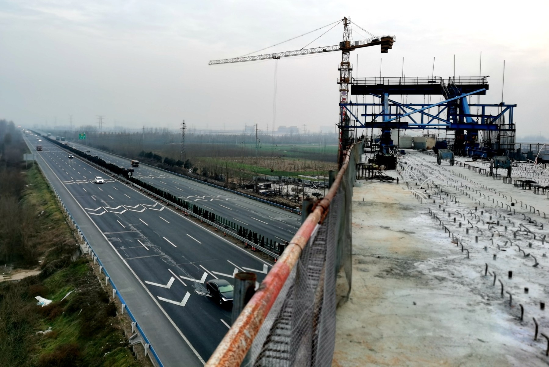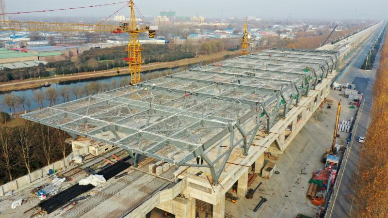 鄭許市域鐵路許昌段再傳捷報(bào),跨京港澳高速公路連續(xù)梁12月25日合龍。 記者 呂正子 攝
