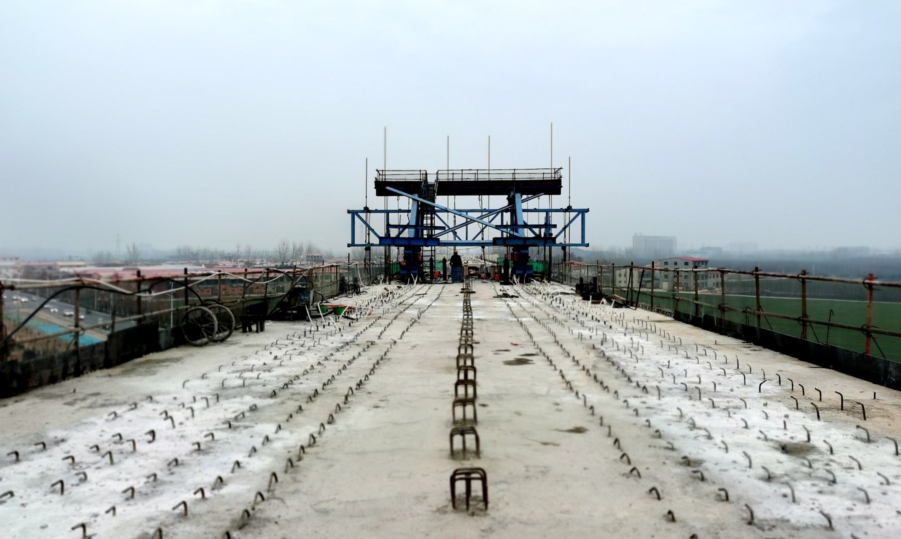跨京港澳高速公路連續(xù)梁橋面 本文配圖均由記者呂正子攝