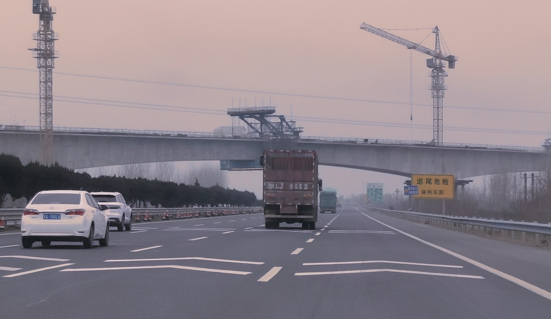 為了保證施工進(jìn)度,同時(shí)不影響京港澳高速公路通車,工程人員采取了多項(xiàng)安全措施:掛籃施工過(guò)程中進(jìn)行兜底全封閉防護(hù),避免高空墜物;在橋面兩側(cè)設(shè)置護(hù)欄,安裝警示標(biāo)志;加強(qiáng)對(duì)施工人員的安全教育……