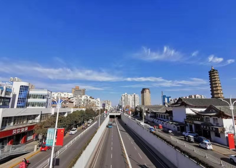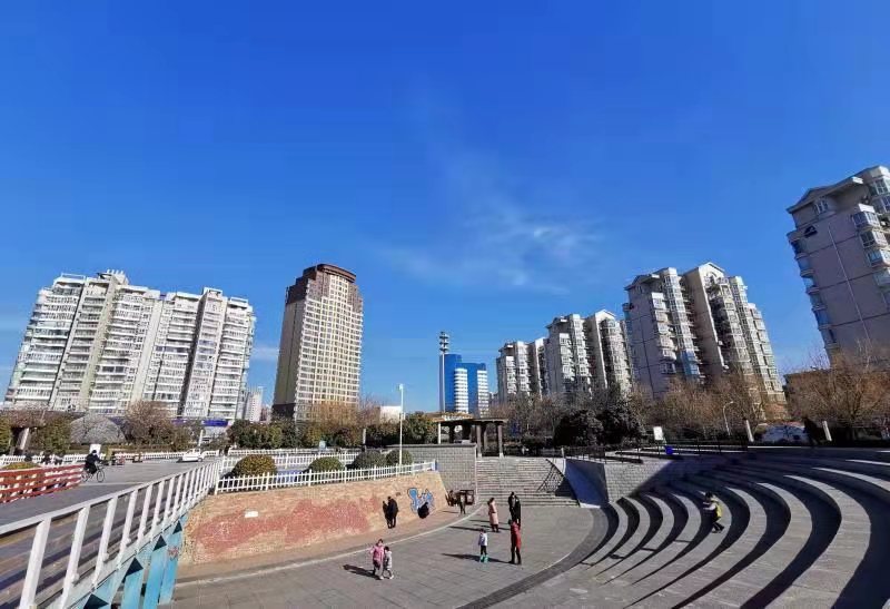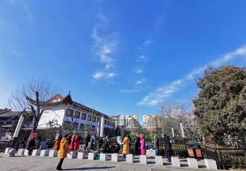 1月9日,氣溫回升,天空湛藍。當天,我市迎來晴好天氣,氣溫重回零度以上,不少市民選擇到戶外游玩鍛煉,享受冬日暖陽。記者 喬利峰 攝
