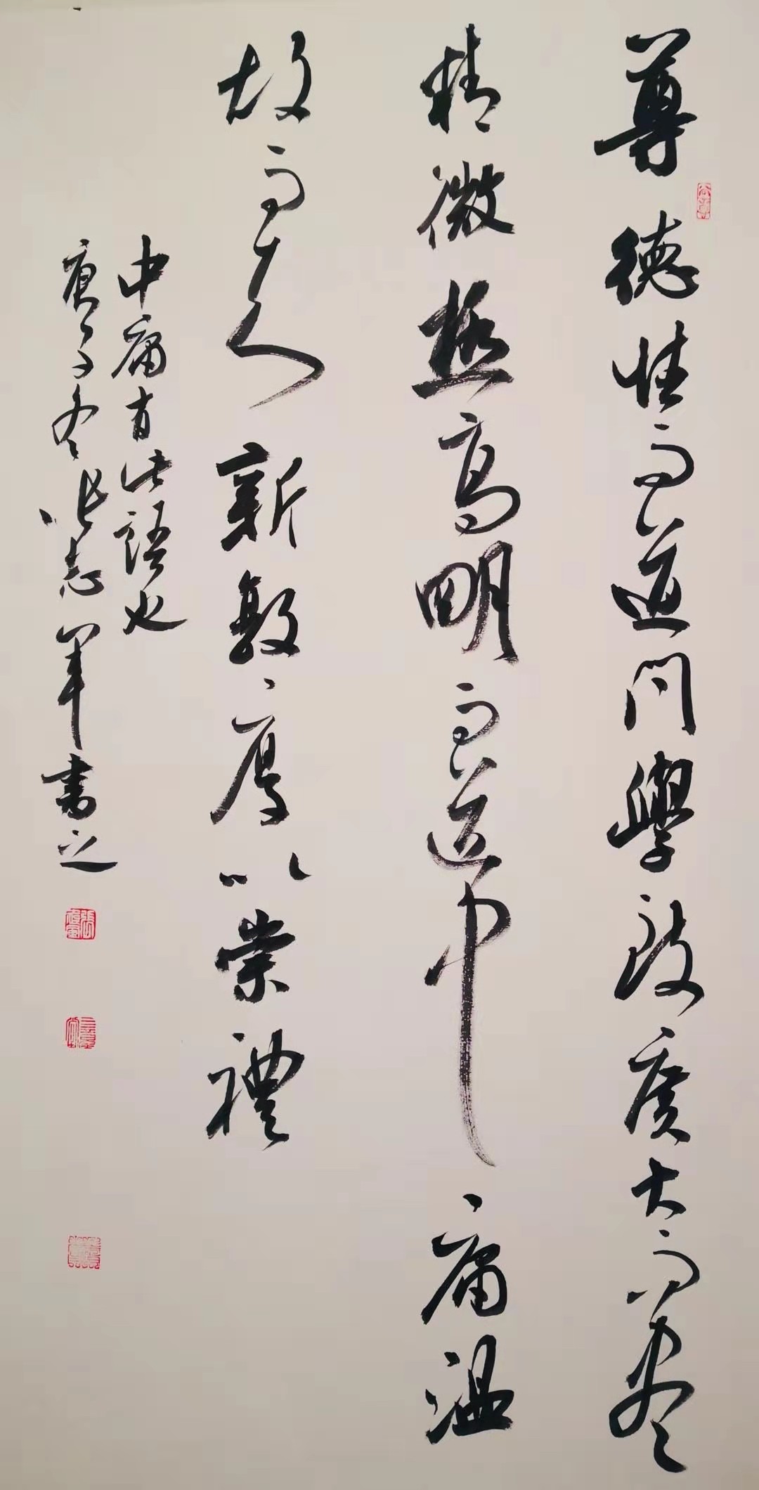 《中庸》句:尊德性而道問學,致廣大而盡精微。極高明而道中庸。溫故而知新,敦厚以崇禮。 張志軍 書
