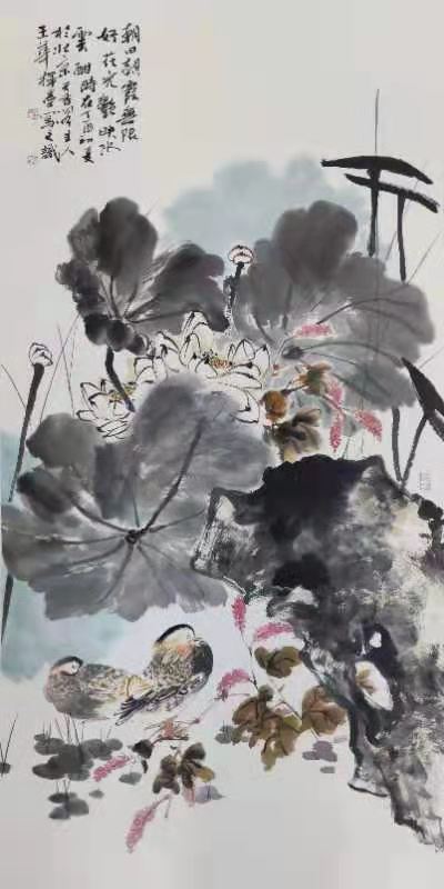 《鴛鴦戲水》王華畫