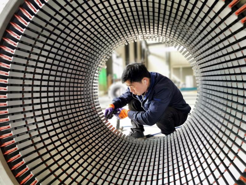 4月6日,位于長(zhǎng)葛市產(chǎn)業(yè)集聚區(qū)的永榮動(dòng)力科技有限公司,工人加緊生產(chǎn)。該公司生產(chǎn)的電機(jī)定子、轉(zhuǎn)子和鐵芯是電機(jī)的“心臟”,可廣泛應(yīng)用于軌道交通、新能源汽車(chē)等領(lǐng)域,出口歐美等10多個(gè)國(guó)家。