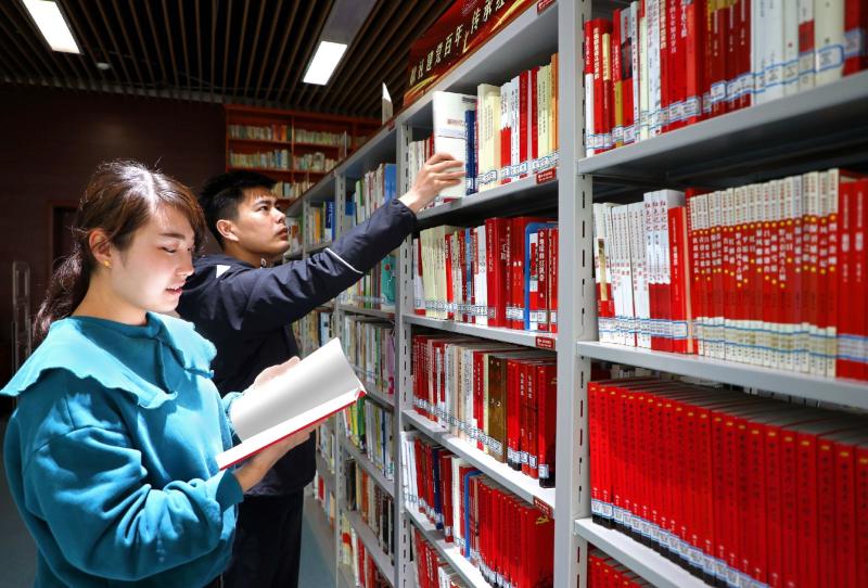 4月21日,在許昌市圖書館“紅書”專架旁,市民在閱覽圖書。近日,為慶祝中國共產(chǎn)黨成立100周年,迎接第26個“世界讀書日”,市圖書館設(shè)立紅色初心、踐行百年——獻(xiàn)禮建黨百年“紅書”專架,集中展示館藏有關(guān)黨史、黨建的期刊和文獻(xiàn),引導(dǎo)市民知黨史、感黨恩、立遠(yuǎn)志,發(fā)揚優(yōu)良革命傳統(tǒng),傳承紅色文化,堅定理想信念。 本報記者 譚宜姝 攝