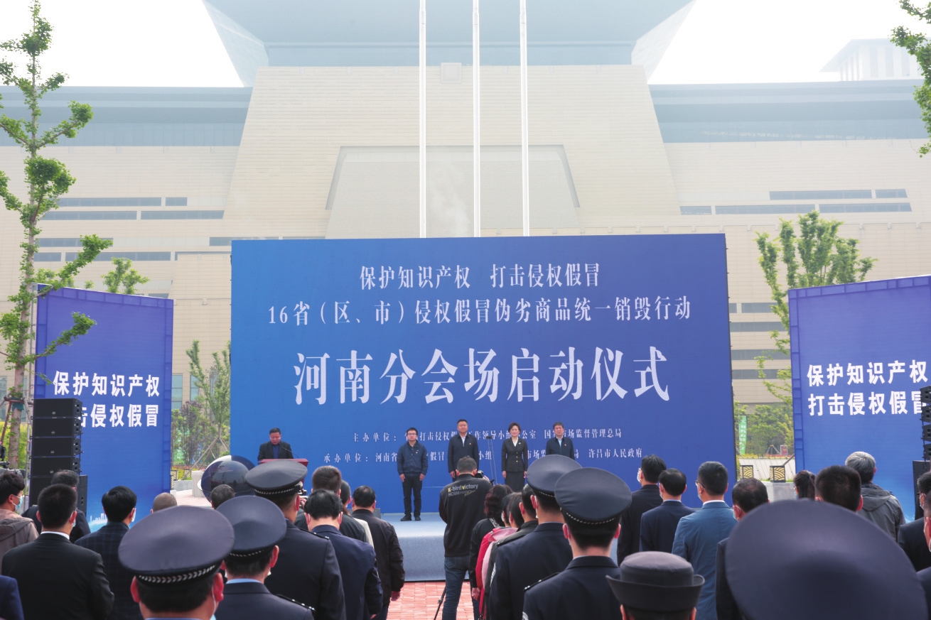 為迎接“世界知識產權日”的到來,4月23日,全省侵權假冒偽劣商品集中統一銷毀行動在我市舉行。此次活動,許昌作為全國分會場、河南主會場,是國家市場監督管理總局、省市場監督管理局對許昌“雙打”(打擊侵犯知識產權和制售假冒偽劣商品)工作的高度肯定。