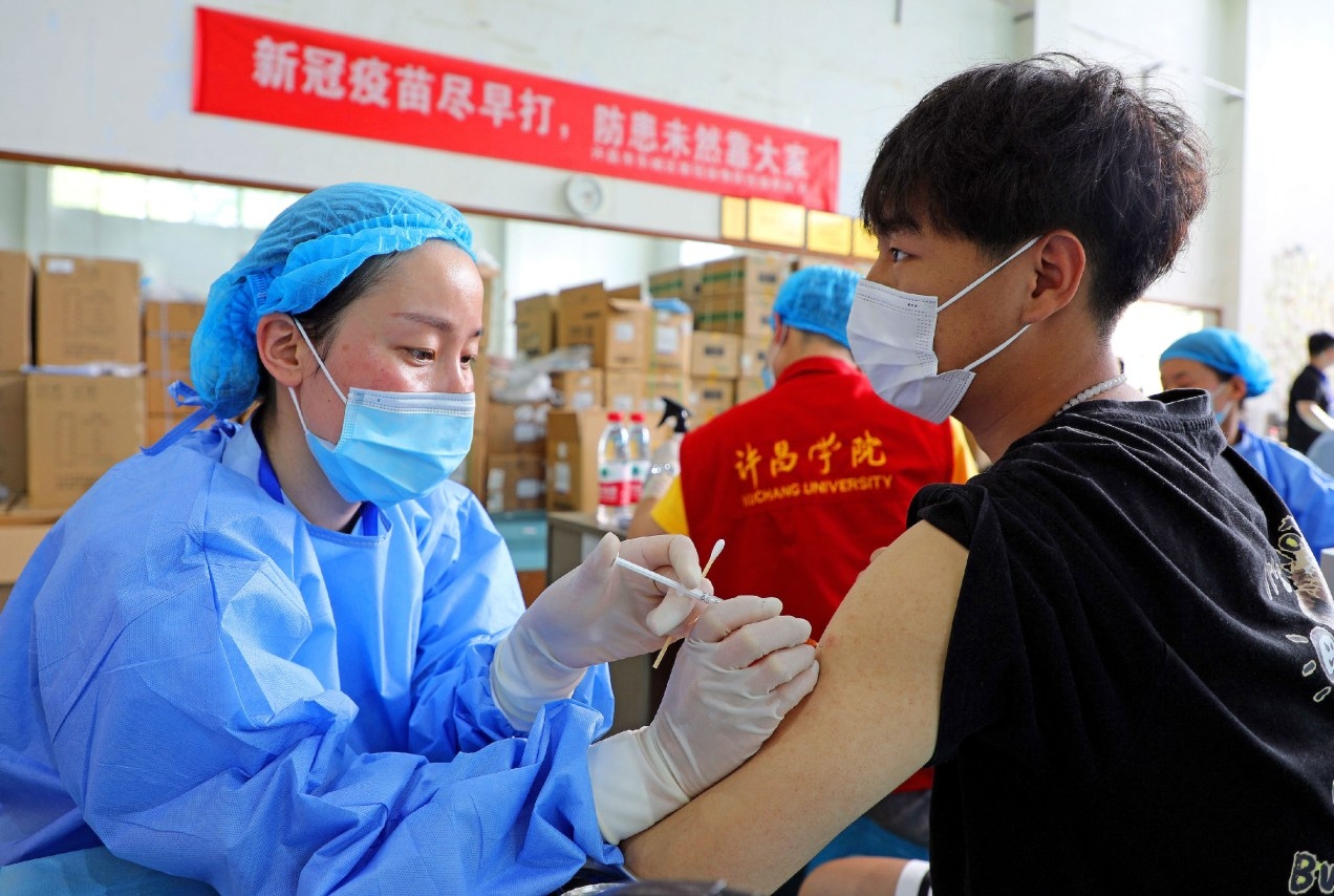 5月7日,在許昌學院臨時集中接種點,學生正在接受新冠疫苗接種。據東城區衛生健康局局長陳再清介紹,他們在許昌學院、許昌職業技術學院設置了臨時集中接種點,將為4.5萬余名師生陸續接種新冠疫苗。