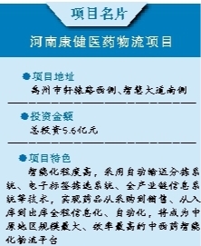 位于禹州市軒轅路西側(cè)、智慧大道南側(cè)的河南康健醫(yī)藥物流項(xiàng)目——河南康健醫(yī)藥藥材股份有限公司現(xiàn)代醫(yī)藥物流中心,建成投運(yùn)后可同時(shí)滿足30萬箱、10800種藥品的儲(chǔ)存、配送,運(yùn)營成本比同行業(yè)低50%,年配送額將達(dá)30億元,利稅將達(dá)4500萬元,將成為中原地區(qū)規(guī)模最大、效率最高的中西藥智能化物流平臺(tái),對做大做強(qiáng)本土企業(yè)、推動(dòng)禹州乃至許昌醫(yī)藥流通產(chǎn)業(yè)高質(zhì)量發(fā)展具有示范性引領(lǐng)作用。