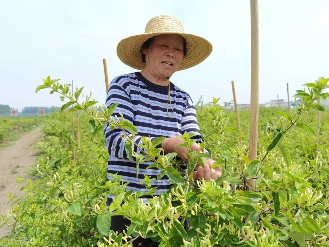 襄城縣庫莊鎮黃橋社區居民在采摘金銀花。(資料圖片)